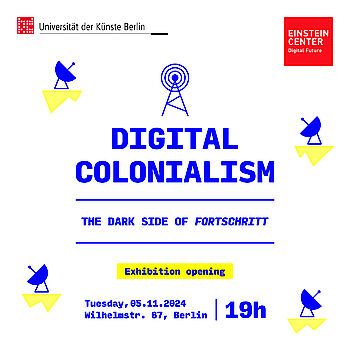 Die Ausstellungseröffnung „Digital Colonialism – The Dark Side of Fortschritt" findet am 5. November 2024 um 19 Uhr im Einstein Center Digital Future statt. Die Ausstellung wird bis Ende Januar im ECDF zu sehen sein, Interessent*innen können sich bei Friedrich Schmidgall für eine Besichtigung per //E-Mail anmelden.